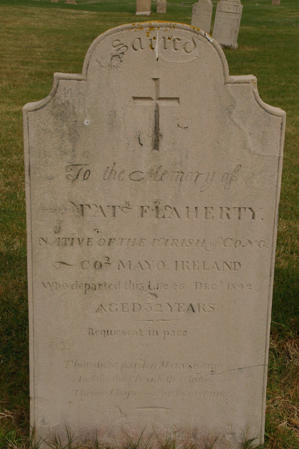 | FLAHERTY | Pat | photo | 26/12/1842 | 32 | Native of the Cong, Co. Mayo Ireland | |||