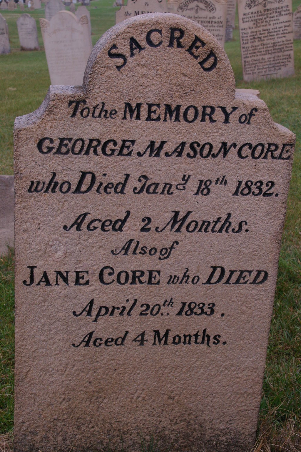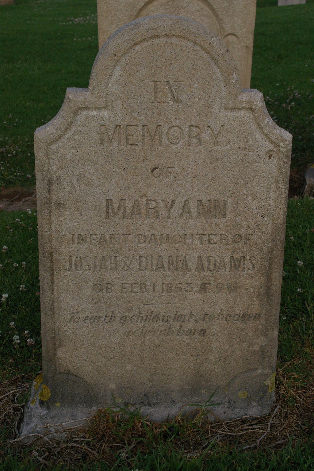 | ADAMS | Mary Ann | photo | 1/02/1853 | 2m | Infant daughter of Josiah & Diana Adams | |||