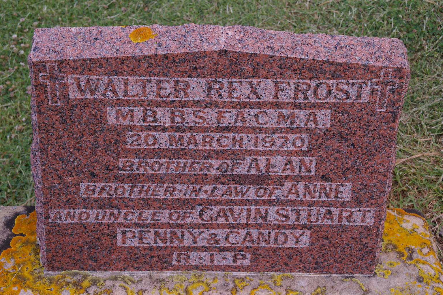 | FROST | Walter Rex | photo | 20/03/1970 | Bro Alan,Brother inlaw of Anne,Uncle to Gavin,Stuart,Penny Candy | ||||