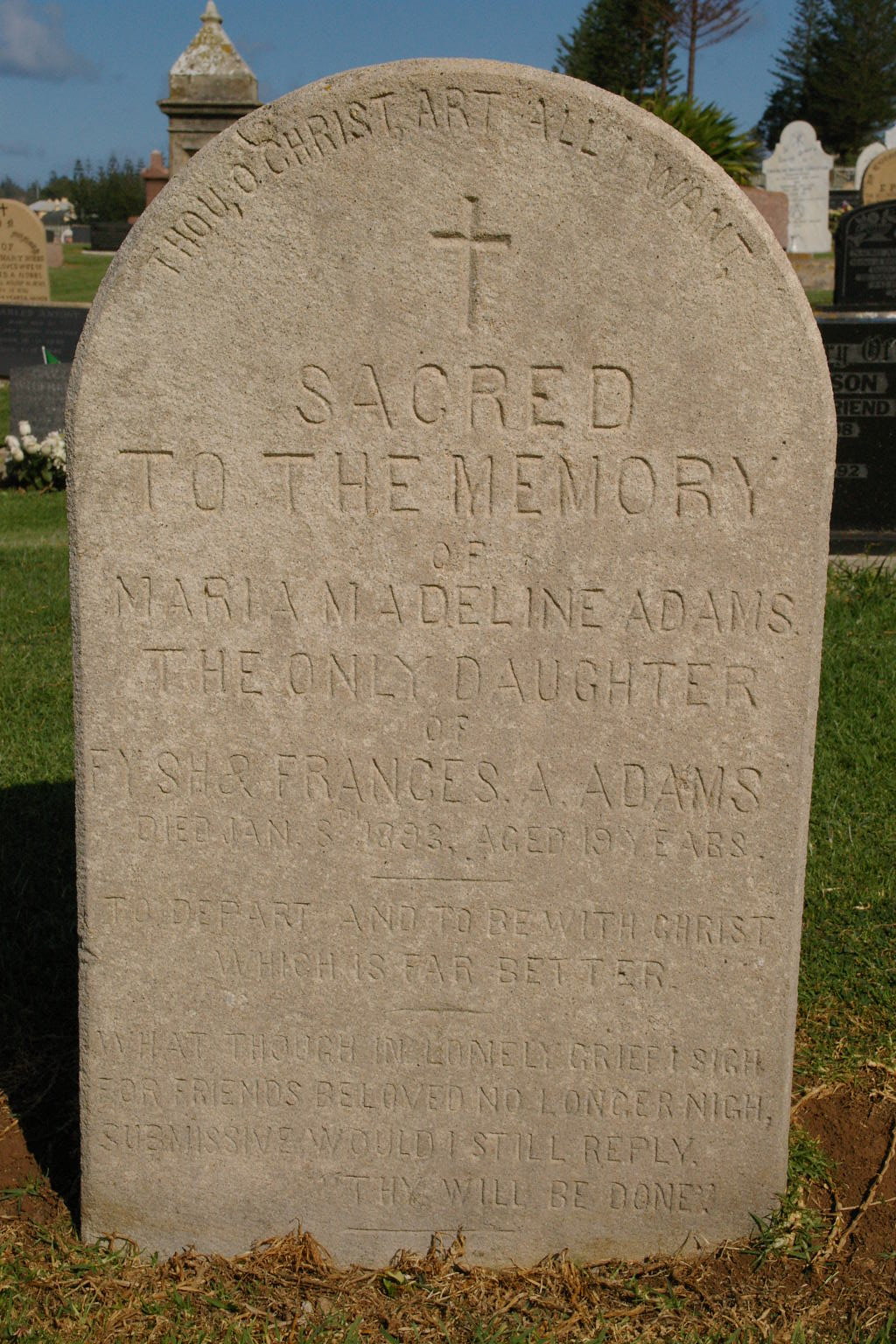 | ADAMS | Katharine Amy | photo | 18/04/1863 | 1864y | 17m | Daughter of Johathan & Phebe Adams | ||