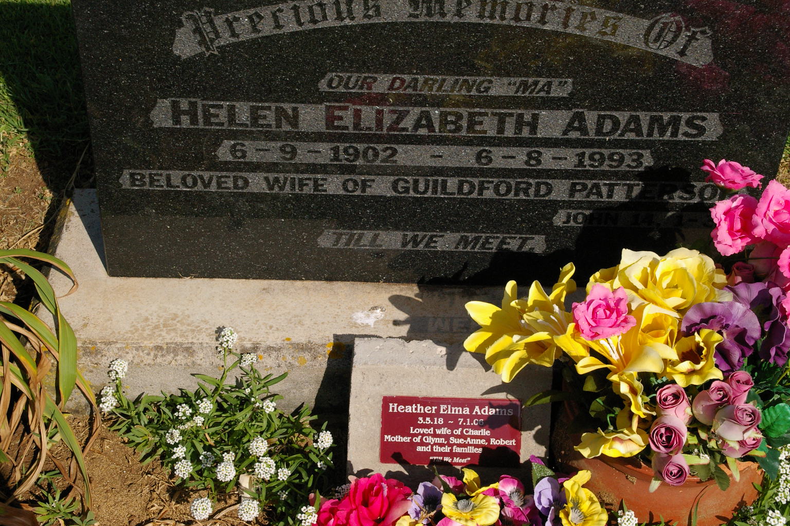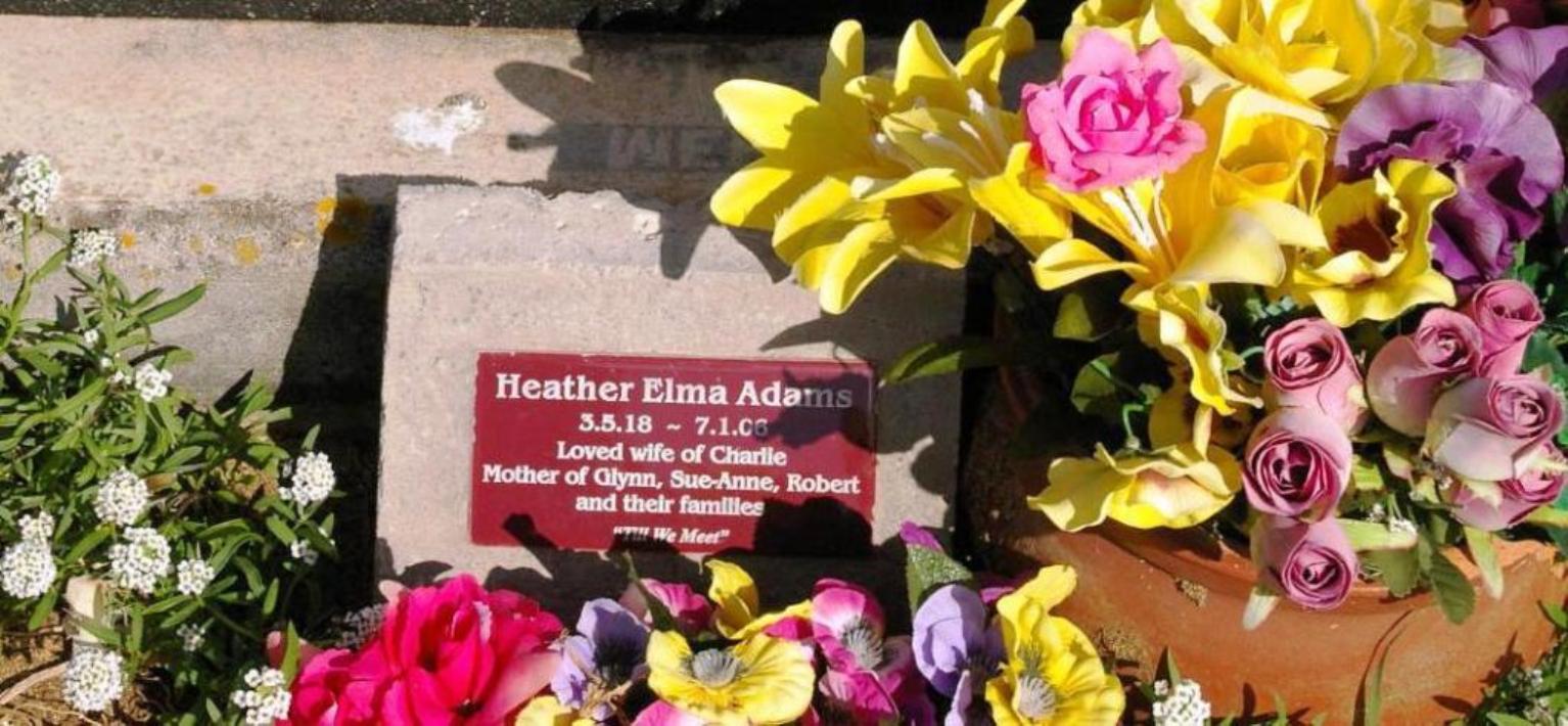 | ADAMS | Heather Elma | photo | photo | 3/05/1918 | 7/01/2006 | Charlie | mother to Glynn,Sue-Anne,Robert | |