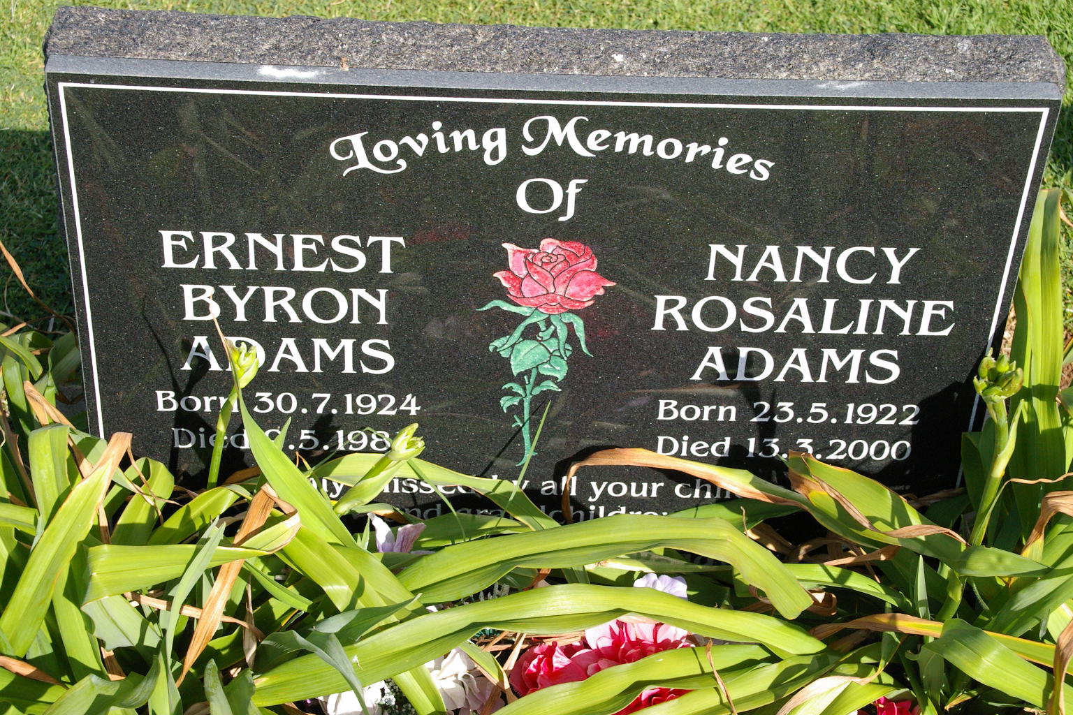 | ADAMS | Nancy Rosaline | photo | 23/45/1922 | 13/03/2000 | Ernest Byron | |||