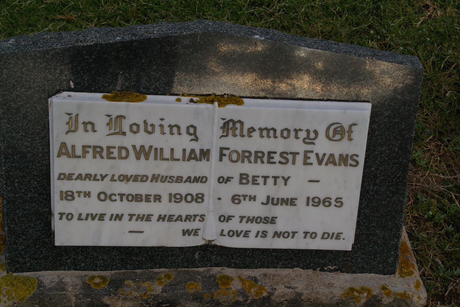 | EVANS | Alfred William Forrest | photo | 18/10/1908 | 6/06/1965 | wife Betty | |||