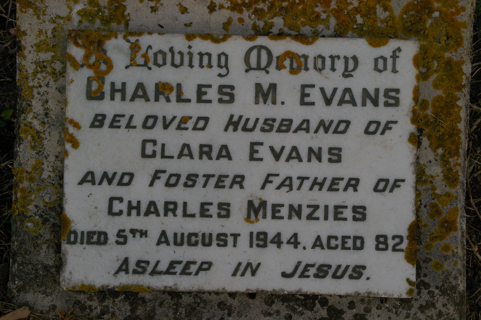 | EVANS | Charles M. | photo | 5/08/1944 | 82 | wife Clara,foster father to Charles Menzies | |||