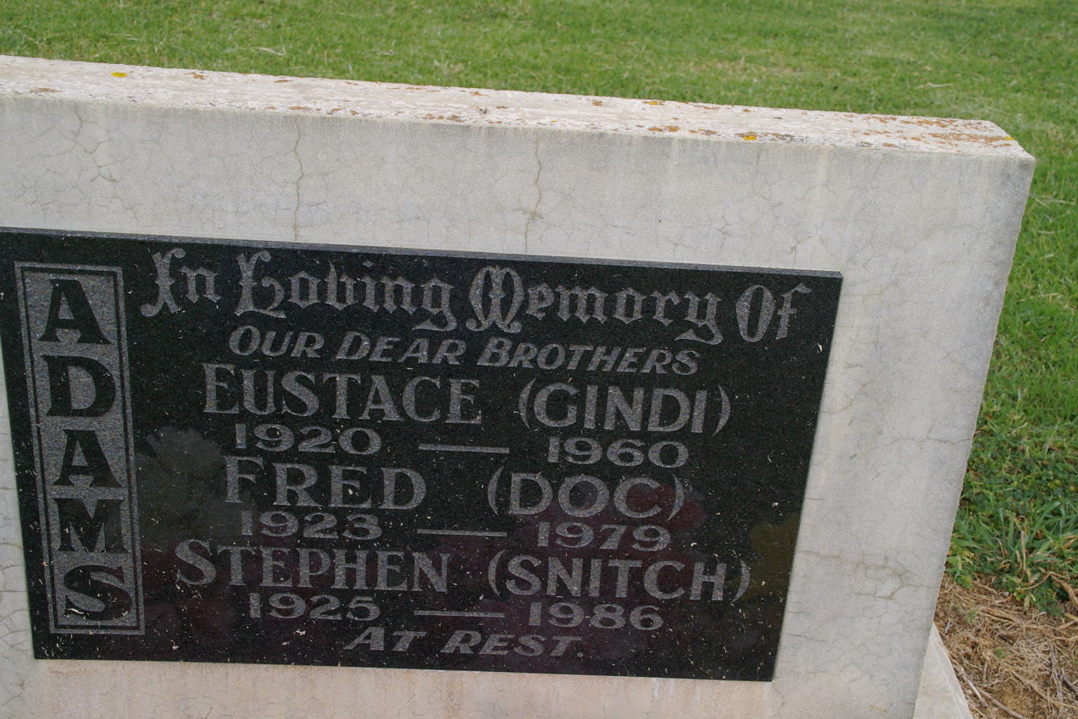 | ADAMS | Fred (Doc) | photo | 1923y | 1979y | Bro to Eustace & Stephen | |||