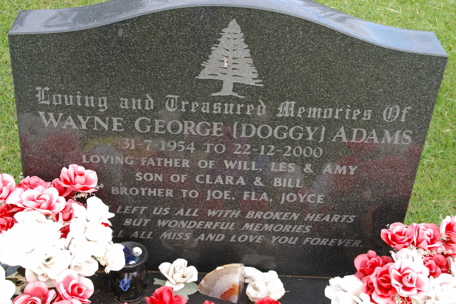 | ADAM | Wayne George (Doggy) | photo | 31/07/1954 | 22/12/2000 | father of Will, Les & Amy, Parents Clara & Bill, Brother of Joe, Fla &Joyce. | |||