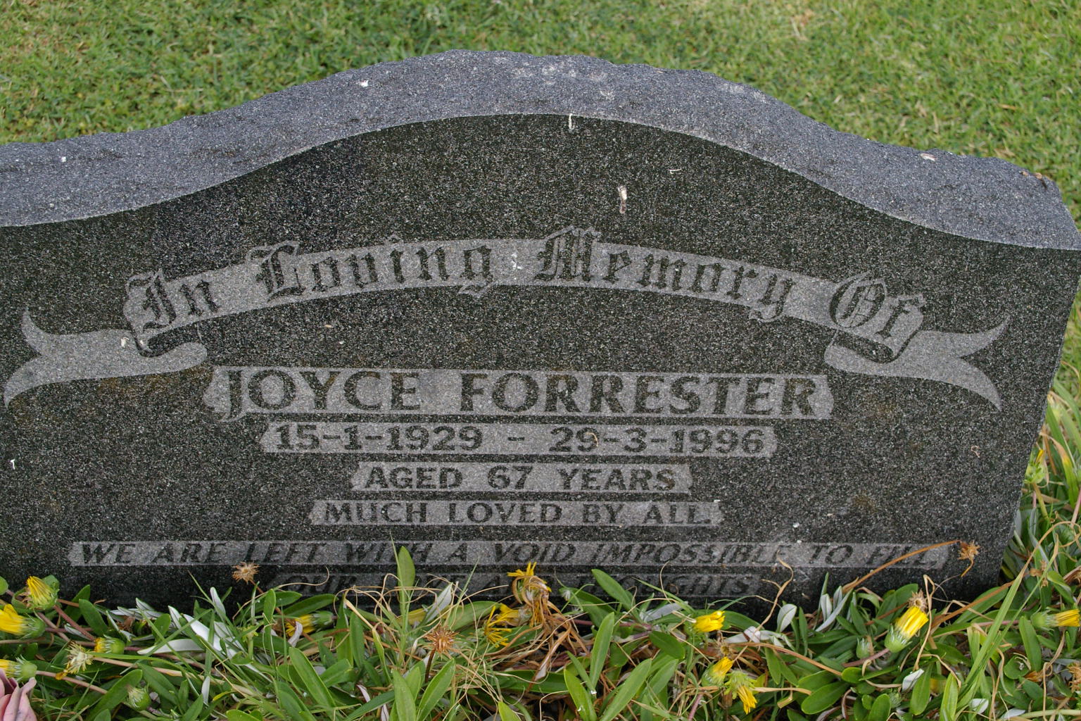 | FORRESTER | Joyce | photo | 15/01/1929 | 29/03/1996 | 67 | |||