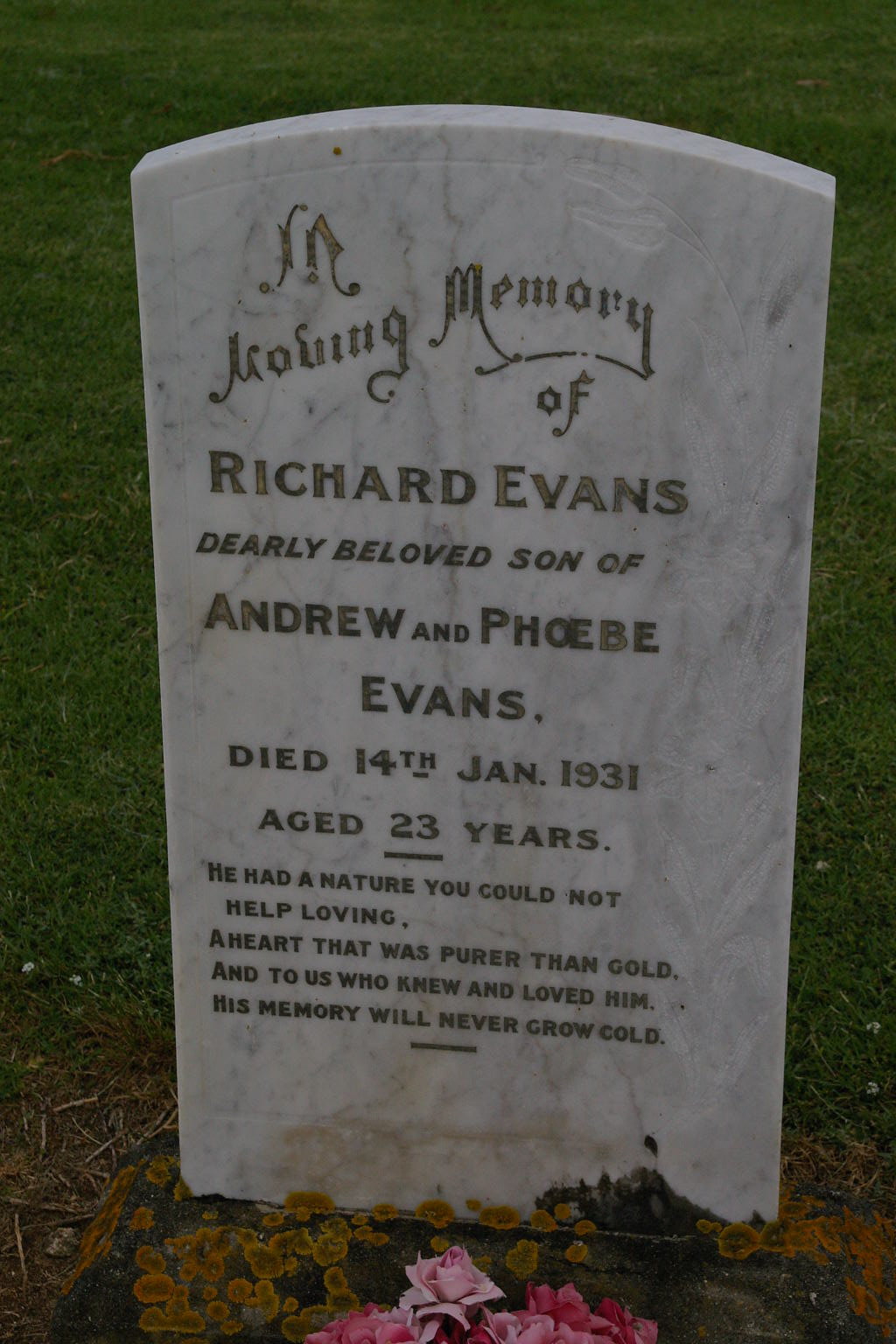| EVANS | Richard | photo | 14/01/1931 | 23 | Beloved son of Andrew & Phoebe Evans | |||