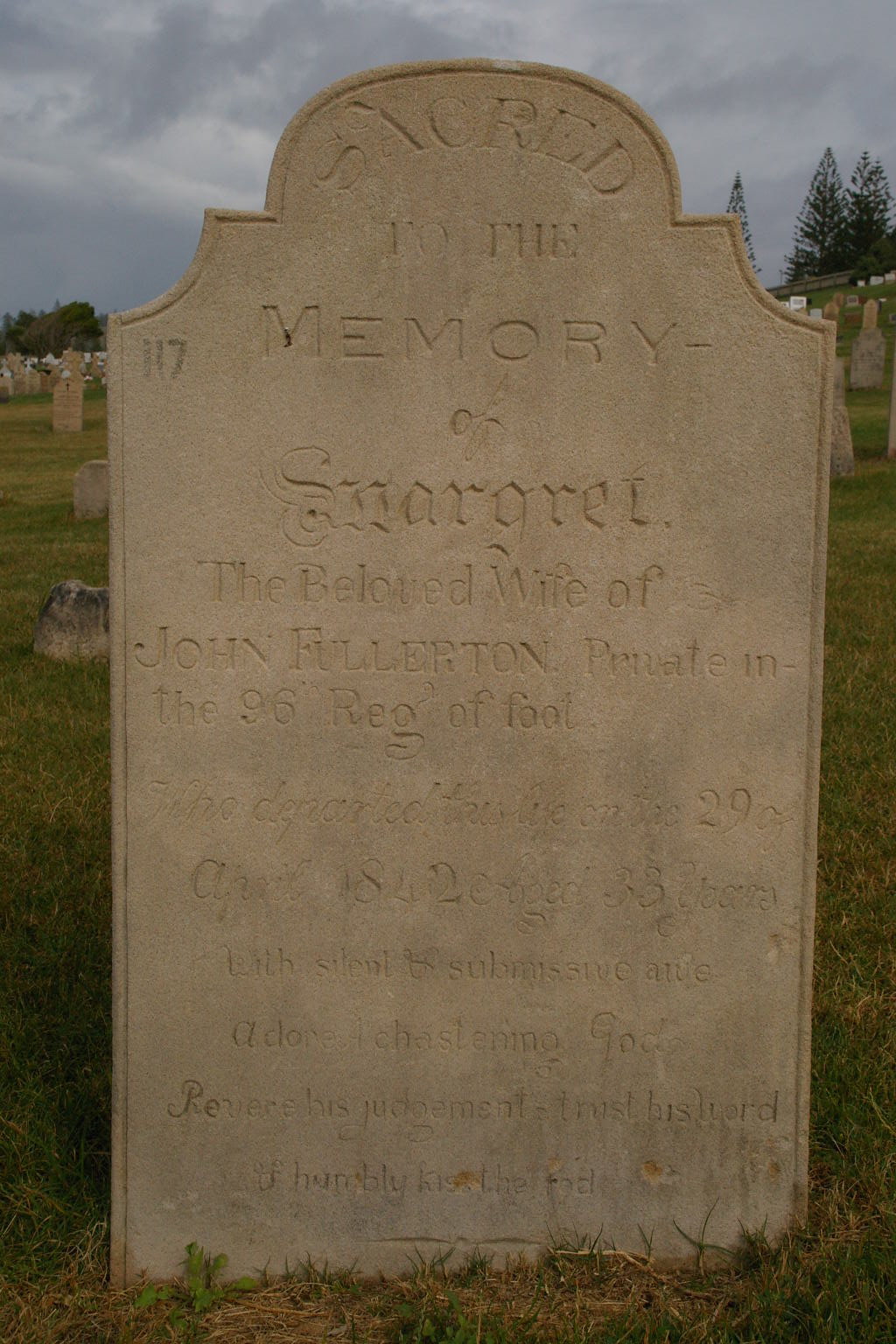 | FULLERTON | Margaret | photo | 29/04/1842 | 23 | Husband John Fullerton Private 96th Regt | |||
