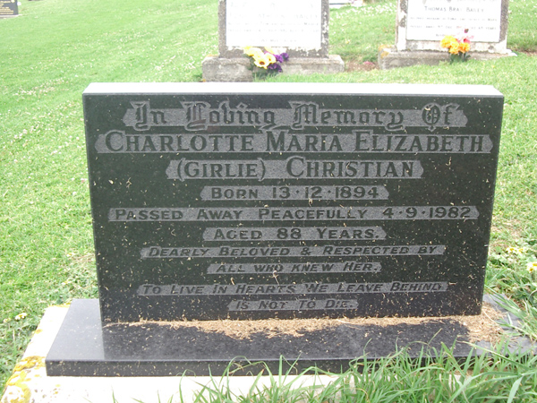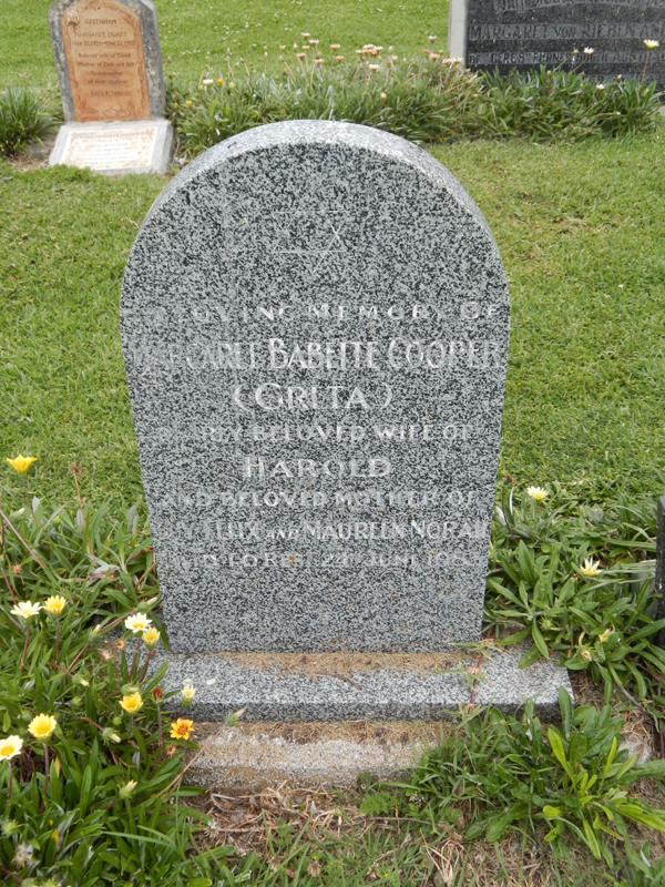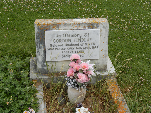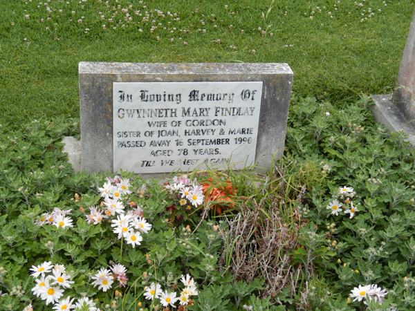 | FINDLAY | Gwynneth Mary | photo | 16/09/1990 | 78 | Gordon | sister of Joan, Harvey & Marie | ||
