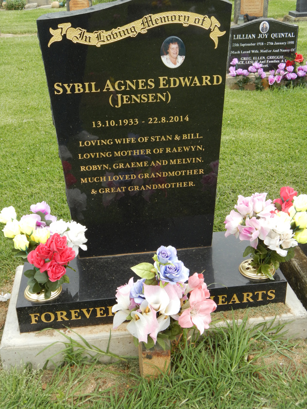 | EDWARD | Sybil Agnes | photo | 13/10/1933 | 22/08/2014 | Stan & Bill | nee Jensen, mother of Raewyn, Robyn, Graeme & Melvin | ||