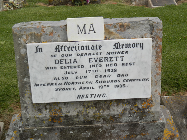 | EVERETT | Delia (Ma) | photo | 17/07/1938 | also our dear dad interred Northern Suburbs Cemetery, Sydney | ||||