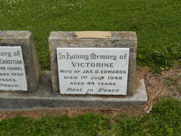 | EDWARDS | Victorine | photo | 1/07/1948 | 44 | Jas D Edwards | |||