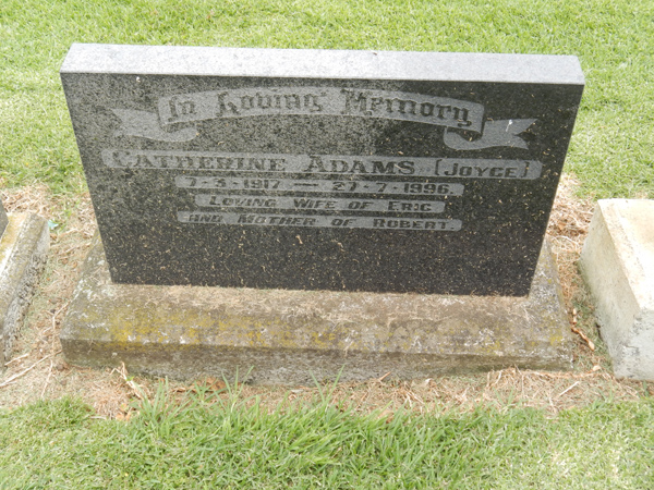 | ADAMS | Catherine | photo | 7/03/1917 | 27/07/1996 | Eric | mother of Robert | ||