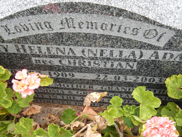| ADAMS | Mary Helena (Nella) | photo | photo | ?/?/1909 | 22/03/2003 | nee Christian | ||