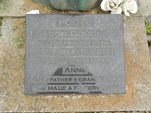 | FOOTE | Eldon Douglas | photo | photo | 29/12/1924 | 17/05/2004 | Anne | Born Alberta, Canada | |