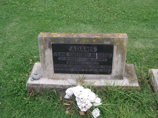 | ADAMS | Frank Guilford Augustus | photo | 21/09/1924 | 16/03/1992 | Joyce | father of Dewys, Boyd, Byron, John | ||