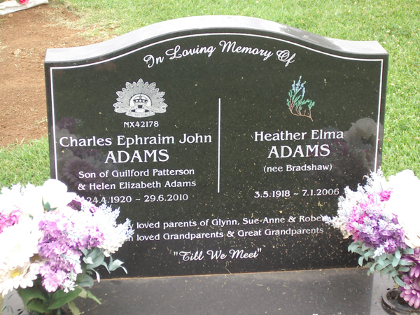 | ADAMS | Charles Ehraim John | photo | 24/04/1920 | 29/06/2010 | son of Guilford Patteerson, parents of Glynn, Sue-Anne & Robert | |||