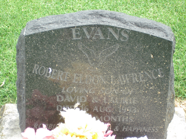 | EVANS | Robert Elbon Lawrence | photo | 16/08/1993 | 18m | son of David & Laurie | |||