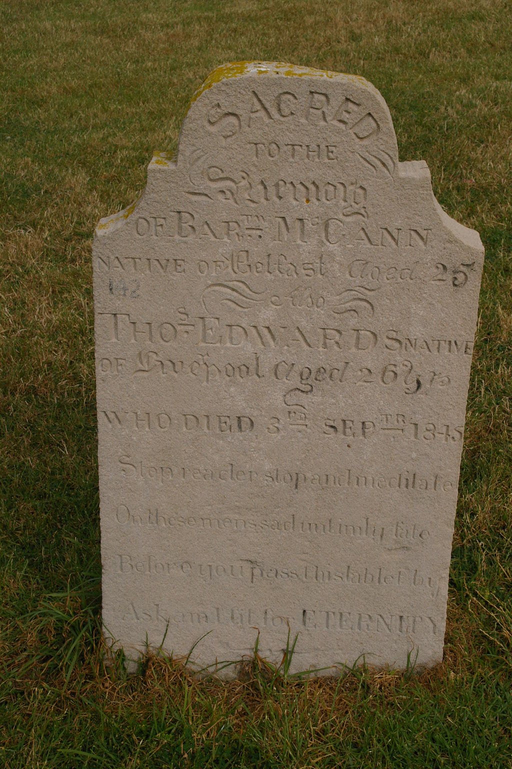 | M'LOUGLIN | John | photo | 15/02/1840 | 27 | Drowned by Upsetting of the boat on the bar of this Harbour | |||