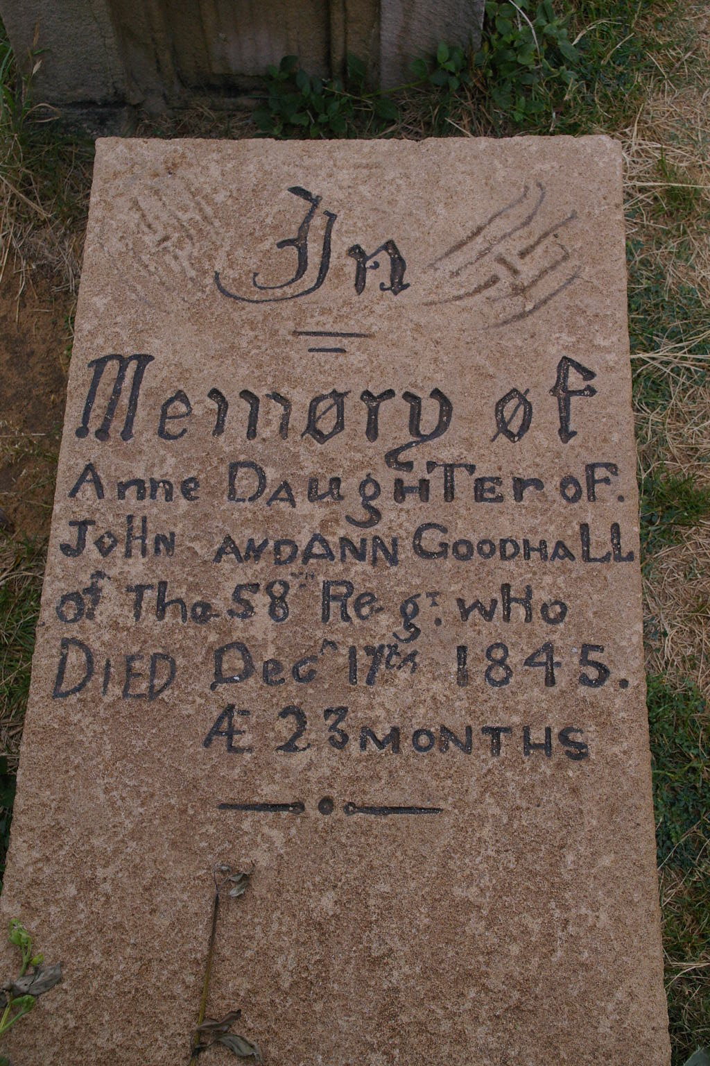 | GOODHALL | Anne | photo | 17/12/1845 | 23m | Father John Andann Goodhall of the 58 Regt | |||