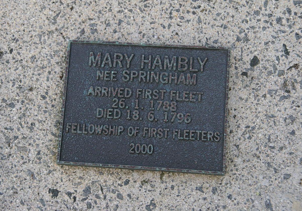 | HAMBLY | Mary | photo | 18/06/1796 | nee Springham, Arrived First Fleet 26/1/1788,Fellowship of First Fleeteers 2000 | ||||