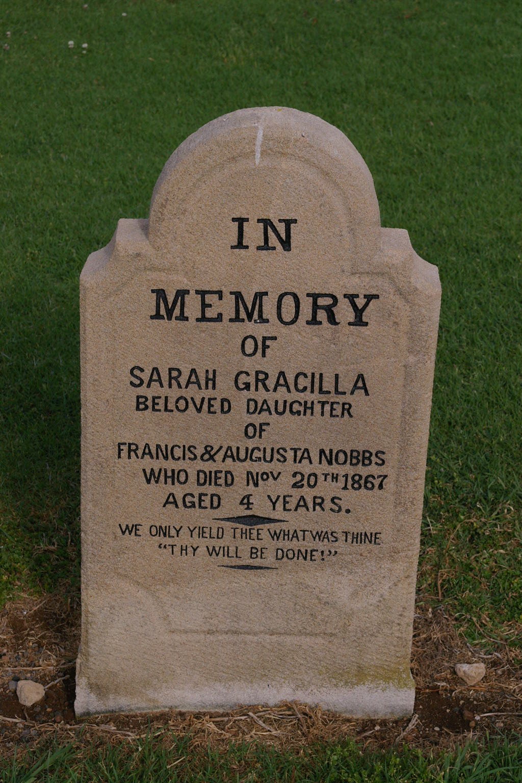 | NOBBS | Sarah Gracilla | photo | 20/11/1867 | 4 | Daugther of Francis & Augusta Nobbs | |||