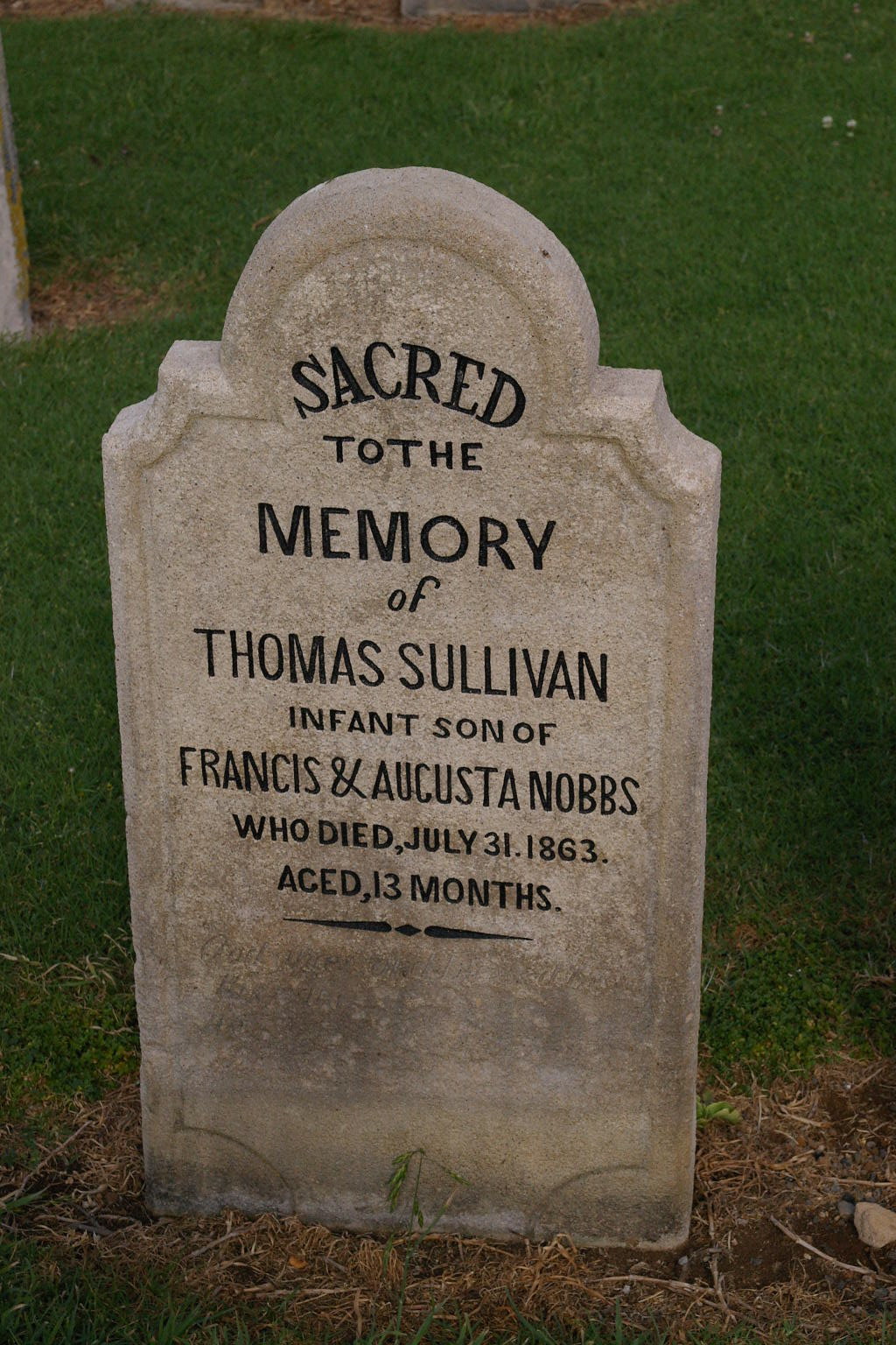 | NOBBS | Thomas Sullivan | photo | 31/07/1863 | 13m | par Francis & Augusta Nobbs | |||