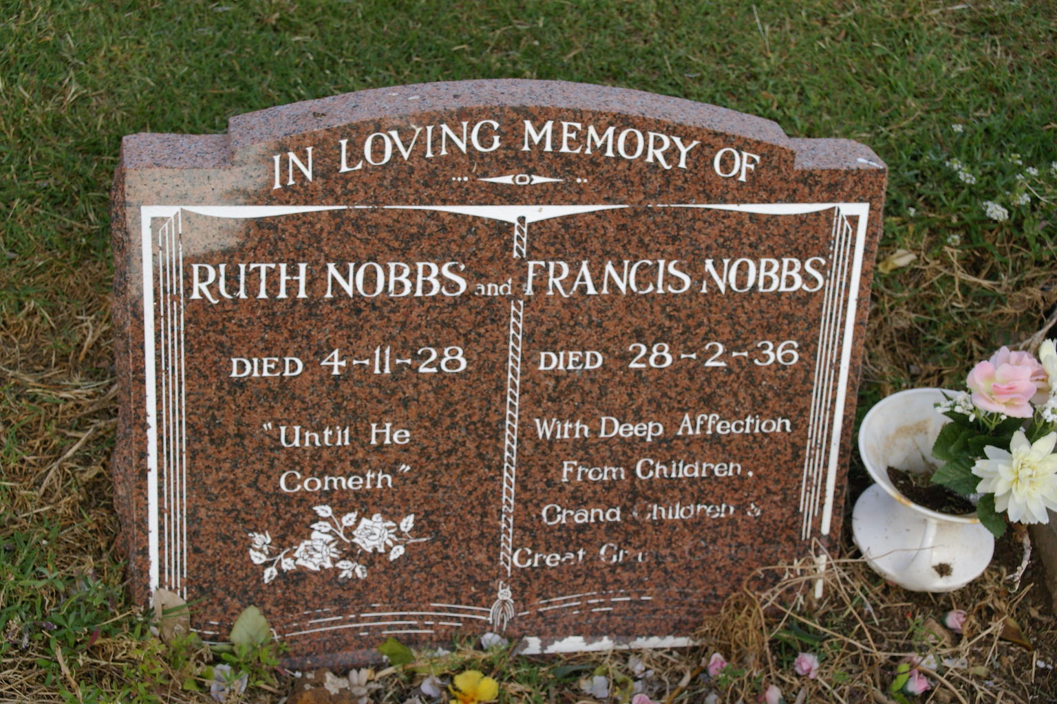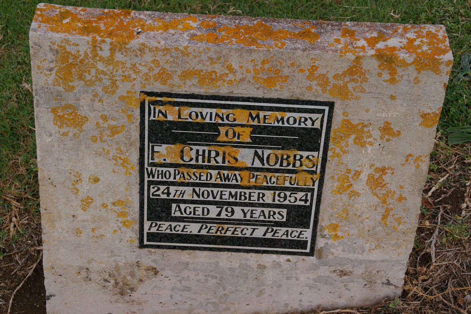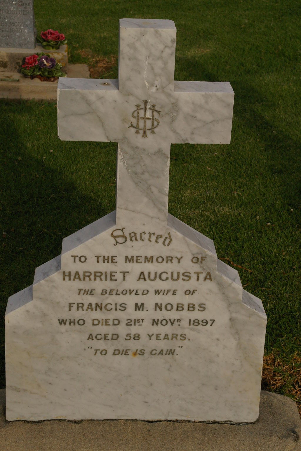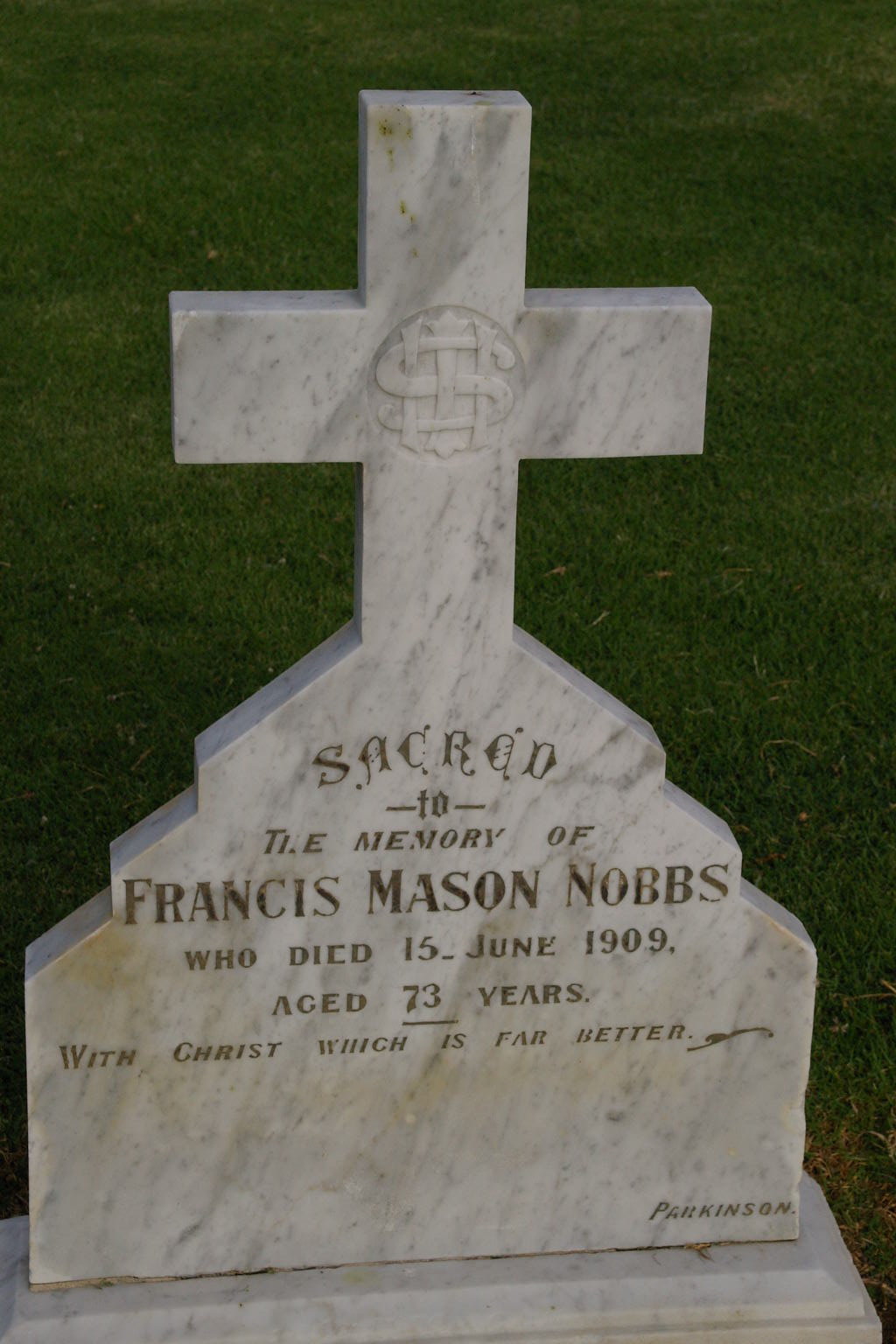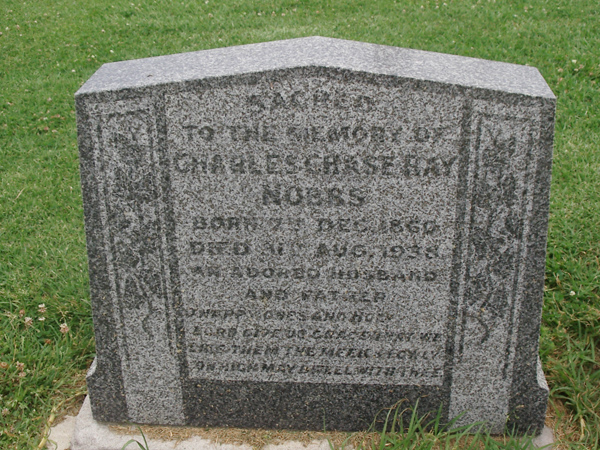 | NOBBS | Francis Mason | photo | 15-06-1909 | 73 | wife Harriet A. Nobbs | |||