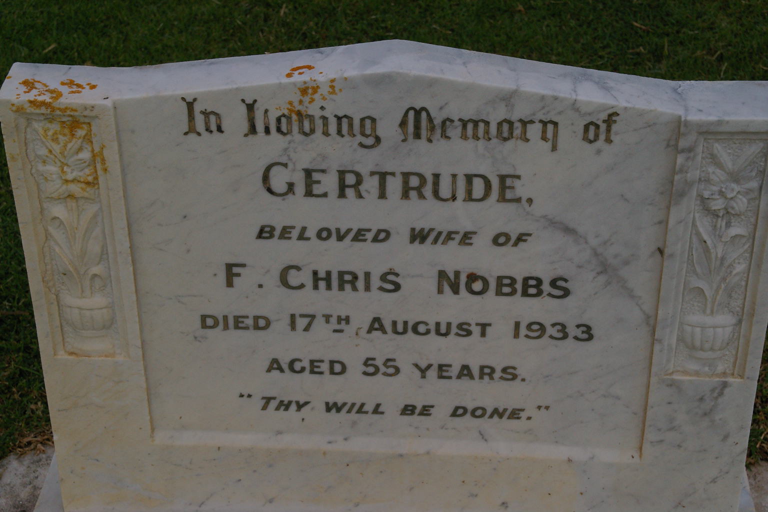 | NOBBS | Gertrude | photo | 17-08-1933 | 55 | Beloved wife of F.Chris Nobbs | |||