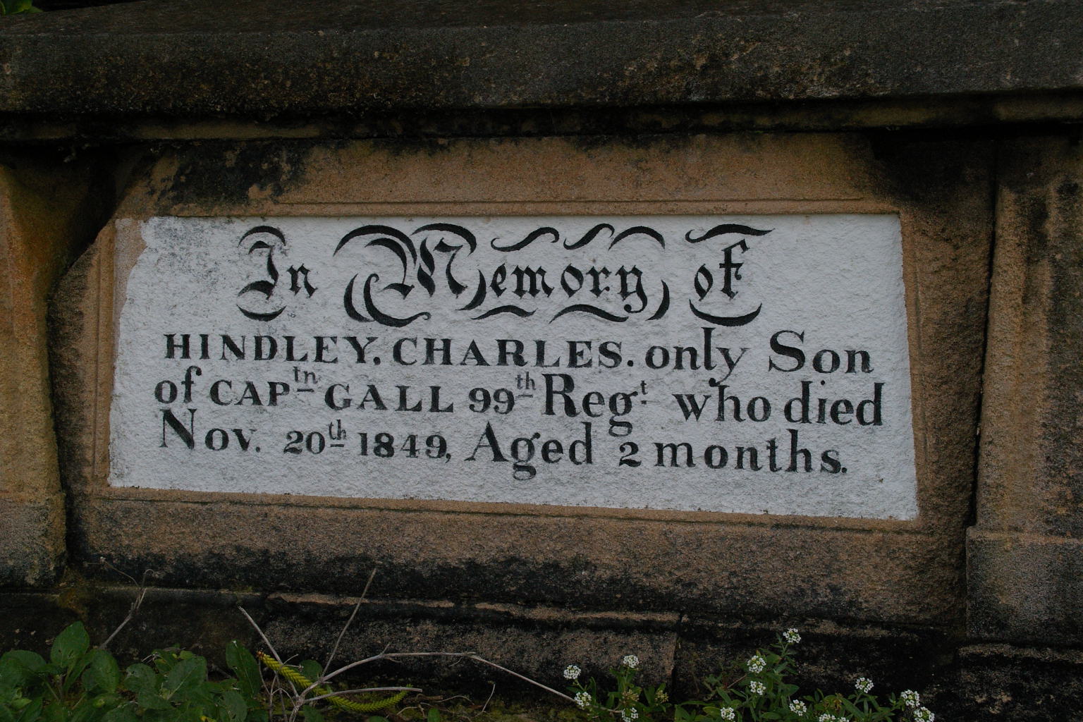 | GALL | Hindley Charles | photo | 20/11/1849 | 2m | Only son of Captain Gall 99th Regt | |||