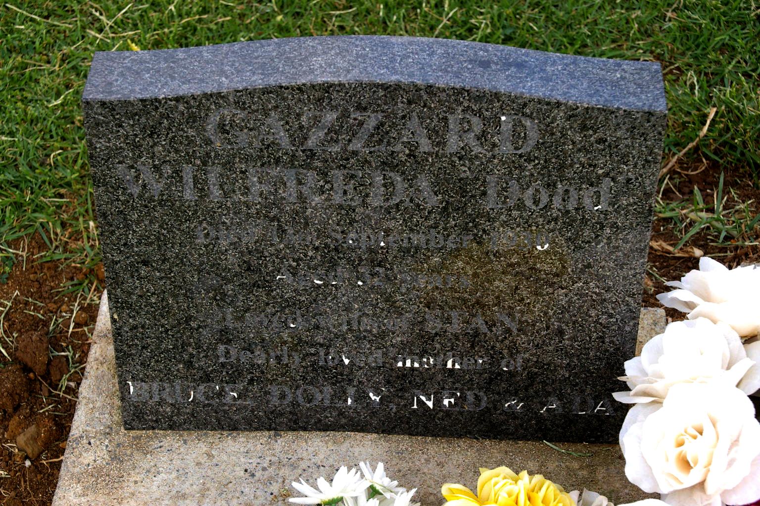 | GAZZARD | Wilfreda | photo | 13-09-1930 | 32 | Mother to Bruce,Dolly,Ned ,Ada | |||