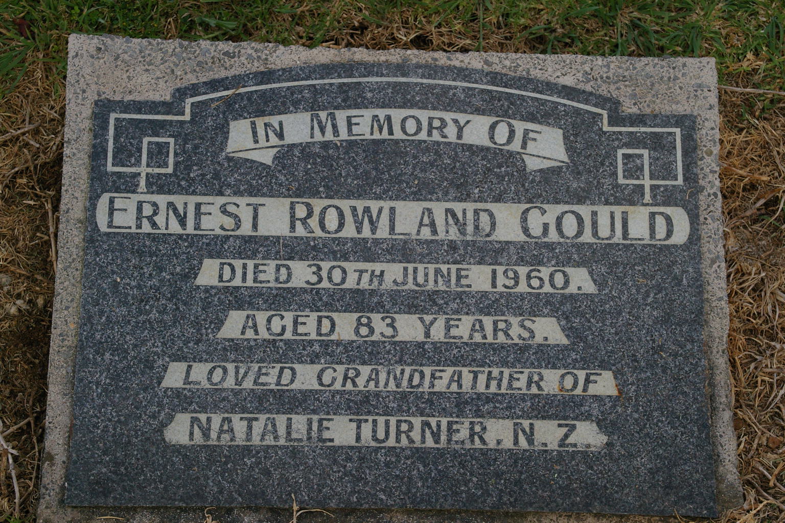 | GOULD | Ernest Rowland | photo | 30-06-1960 | 83 | Loved grandfather of Natalie Turner N.Z. | |||