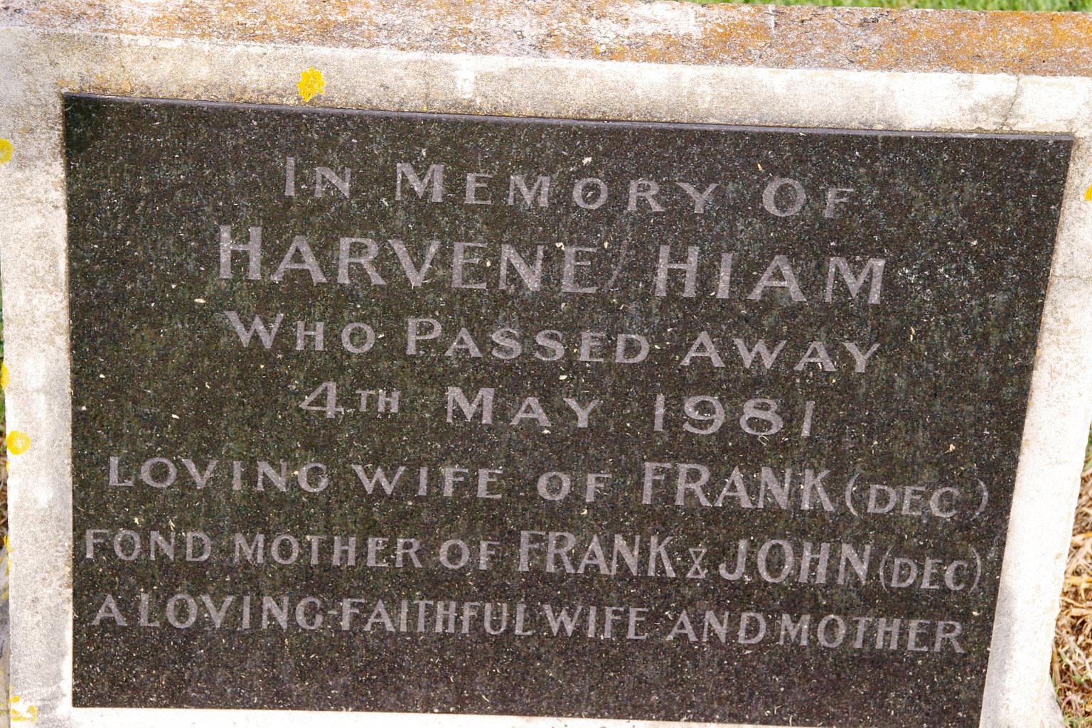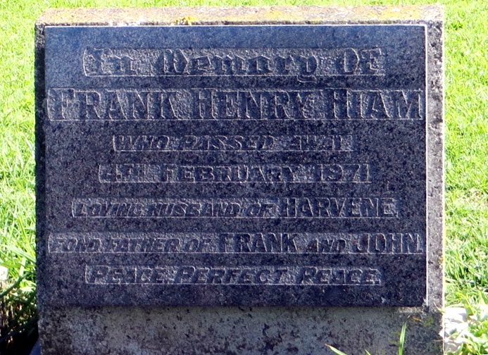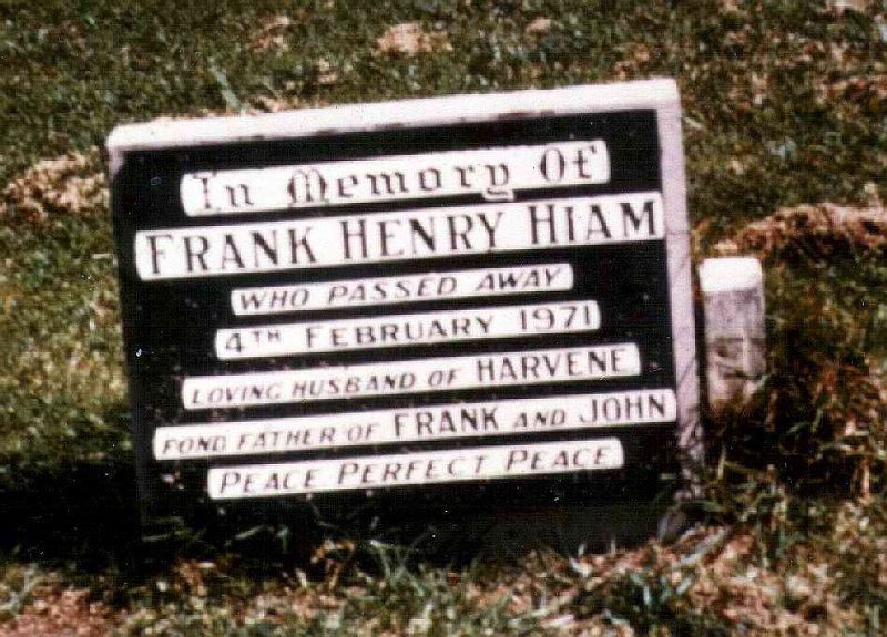 | HIAM | Frank Henry | photo | photo | 1901 | 04/02/1971 | wife Harvene father to Frank & John b:Victoria f:Frank m:Anne mar: 9 July 1921 | ||