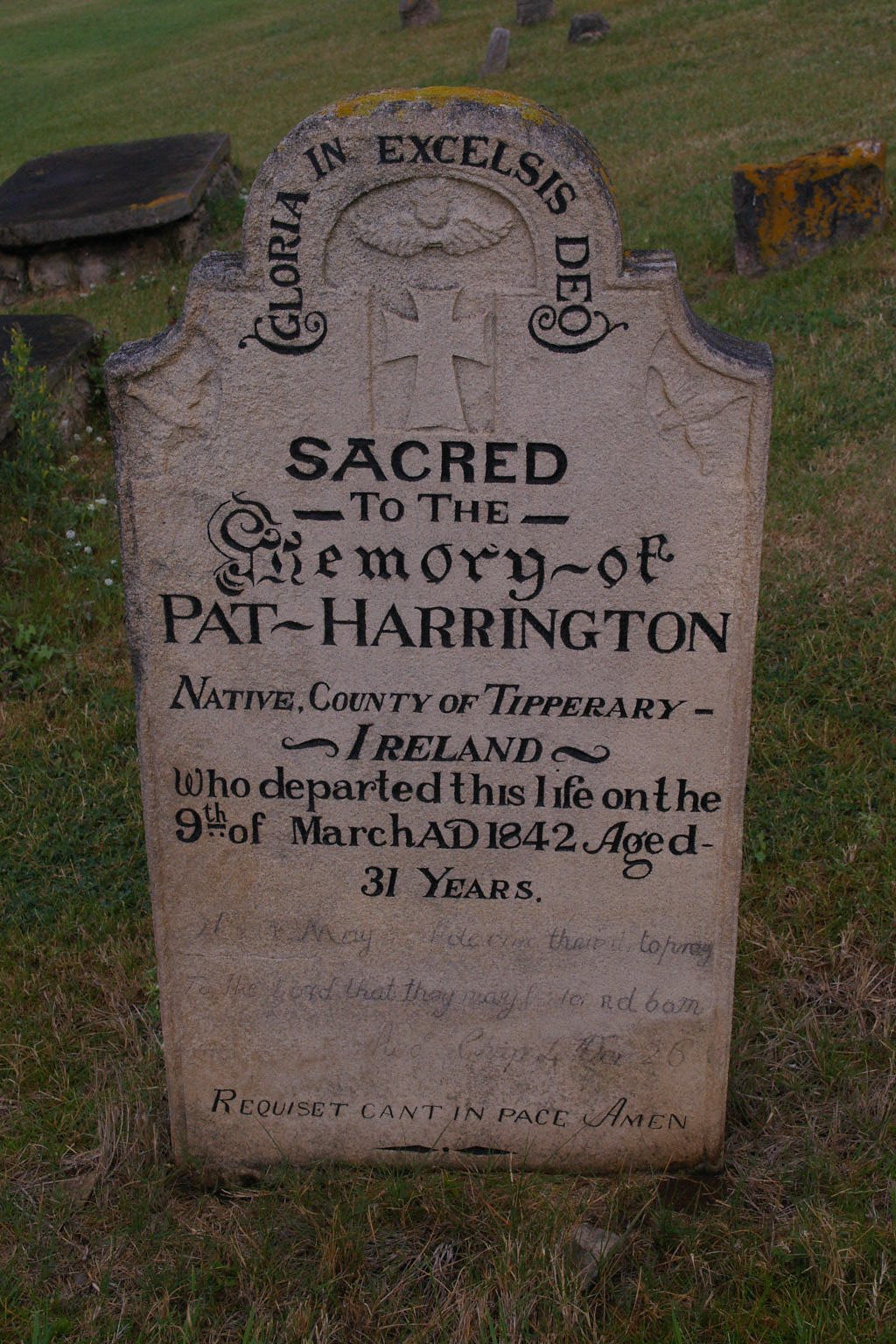 | HARRINGTON | Pat | photo | 9/03/1842 | 31 | Native of County of Tipperary Ireland | |||