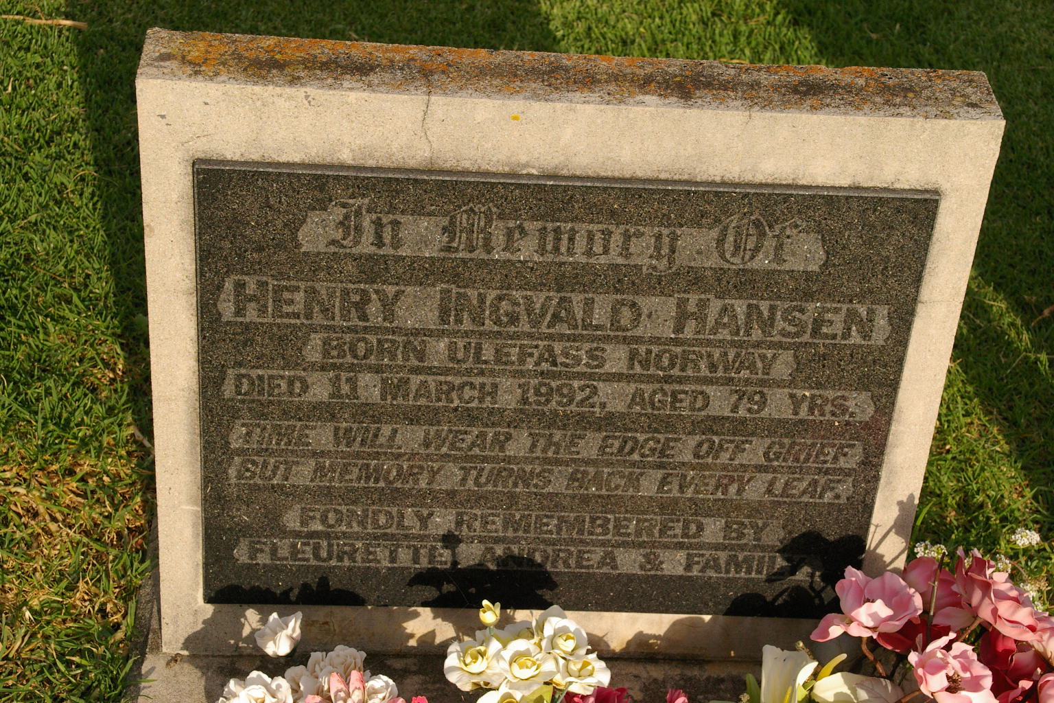 | HANSEN | Henry Ingvald | photo | 11-03-1992 | 79 | Born in Ulefass Norway,remembered by Fleurette,Andrea & Family | |||