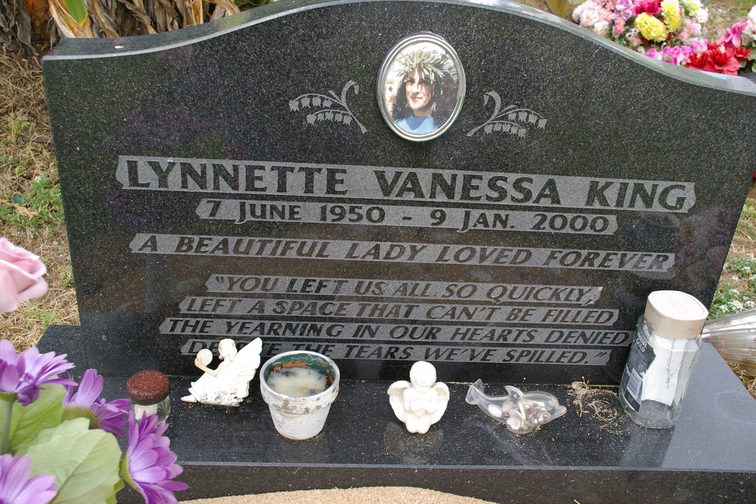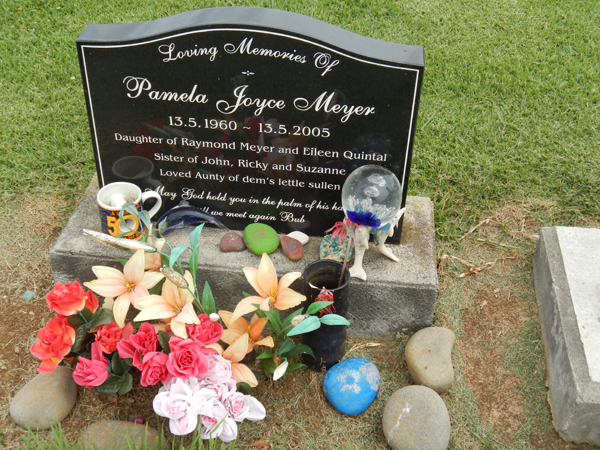 | MEYER | Pamela Joyce | photo | 13-05-1960 | 13-05-2005 | daughter of Raymond Meyer & Eileen Quintal, sister of John, Ricky & Suzanne Aunty of dem's lettle sullen | |||