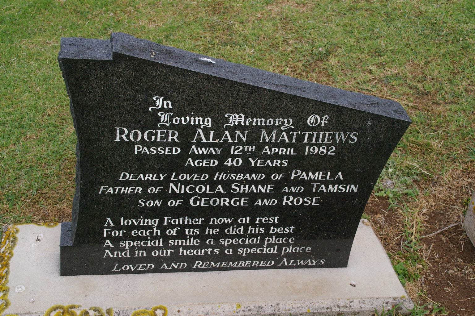 | HAWKINS | Neil Martin | photo | 10-08-1948 | 29-10-2007 | Ruth | father of Simone & Michael | ||