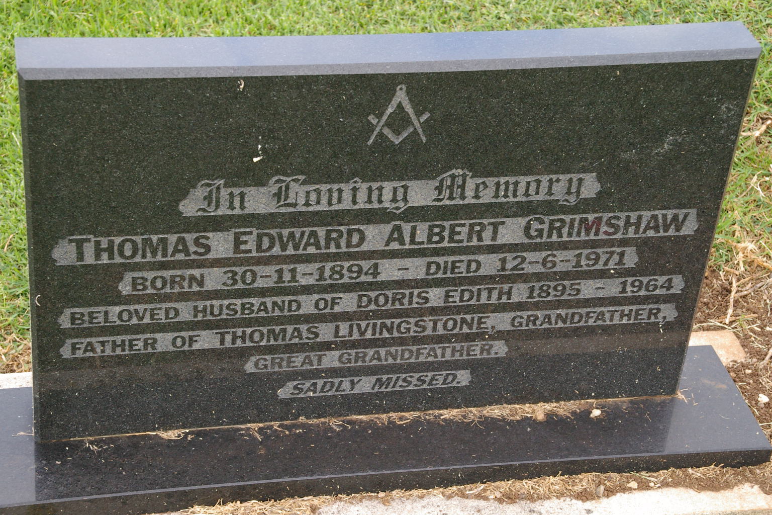 | GRIMSHAW | Thomas Edward Albert | photo | 30/11/1894 | 12-06-1971 | father to Thomas Livingstone Grimshaw | |||