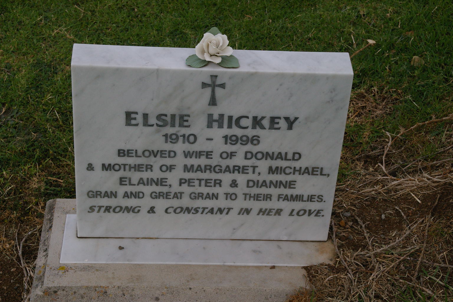 | HICKEY | Elsie | photo | 1910y | 1996y | Beloved wife of Donald,mother to Margaret,Michael,Elaine,Peter,Dianne | |||
