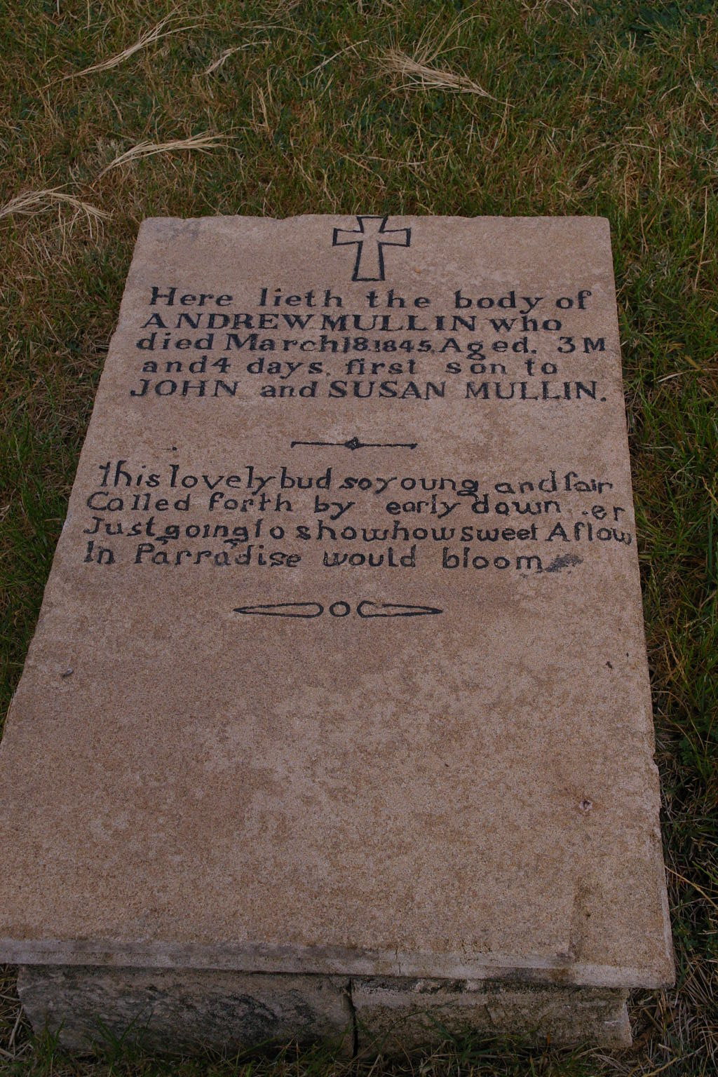 | MULLIN | Andrew | photo | 18/03/1845 | 3m&4d | Infant son of John & Susan Mullin | |||