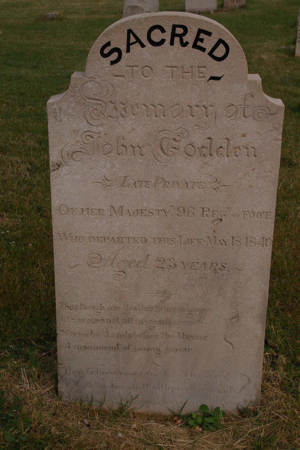 | GODDEN | John | photo | 18/05/1840 | 23 | Private of H.M 96th Regt | |||