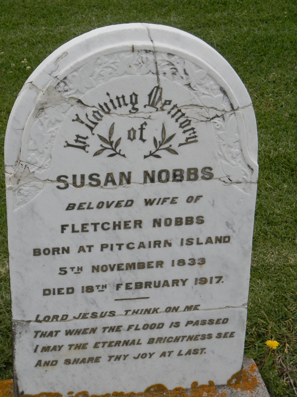 | NOBBS | Susan | photo | 5/11/1833 | 18-02-1917 | Fletcher Nobbs | Born Pitcairn Island | ||