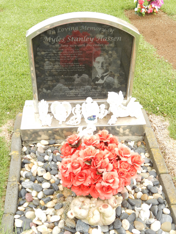 | HASSEN | Myles Stanley | photo | 17-06-1975 | 15-12-1999 | son of Melinda and Rob, bro of Caine, Uncle of Lachland and Makeely, Grandson of Lona and Goldie and Barbara and ? | |||