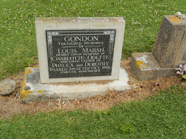 | GONDON | Louis Marsh | photo | 13-10-1981 | Charlotte Odette | father of Philex & Dorothy | |||