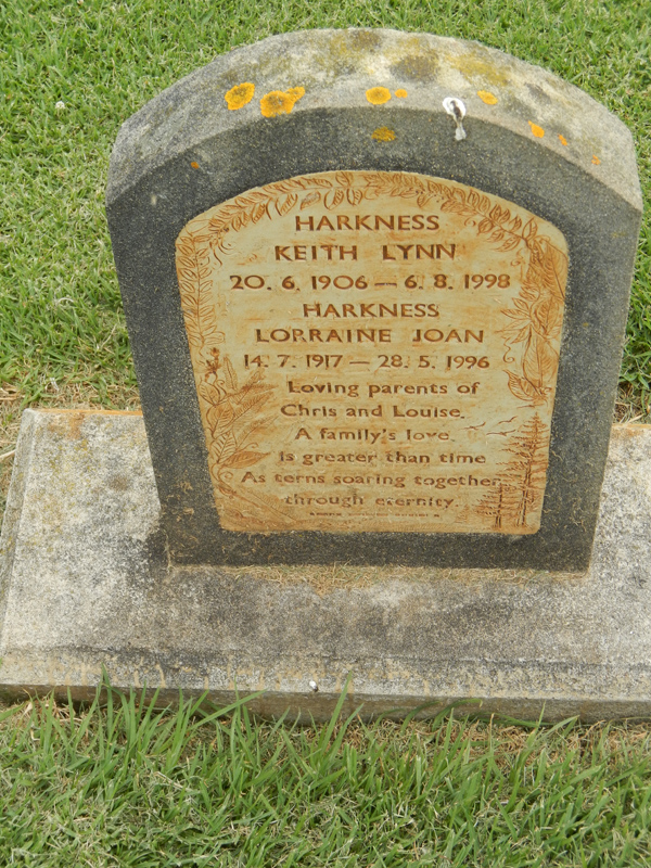 | HARKNESS | Keith Lynn | photo | 20-06-1906 | 06-08-1998 | Lorraine Joan | par of Chris & Louise | ||
