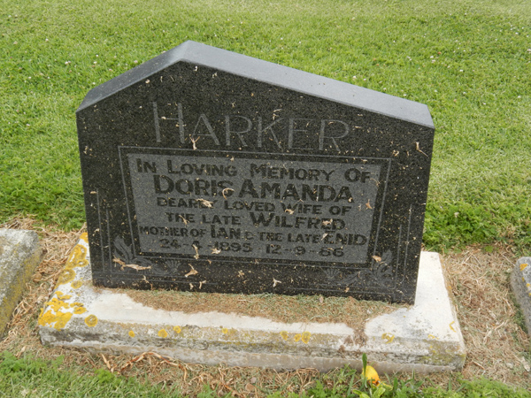 | HARKER | Doris Amanda | photo | 24/04/1895 | 12-09-1986 | Wilfred | mother of Ian & the late Enid | ||