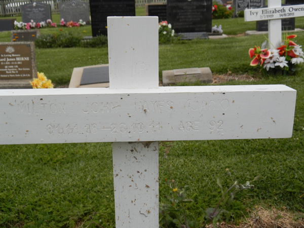 | HAYES | Milton John (Jacko) | photo | 01-11-1918 | 26-10-2011 | 92 | |||