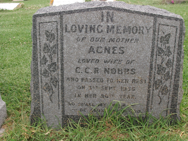 | NOBBS | Agnes | photo | 03-09-1956 | 86 | C C R Nobbs | |||