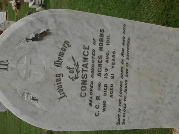 | NOBBS | Constance | photo | 13-08-1911 | 21 | daughter of CCR & Agnes Nobbs | |||